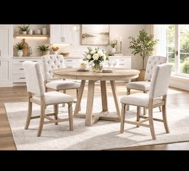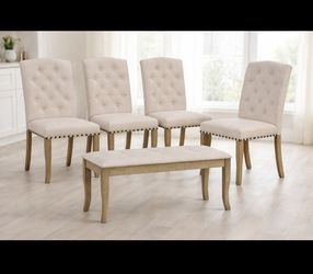 5 Pieces Natural Fram Upholstered Chairs & Bench For Dining Room Natural Wood [NEW] **Assembly Req** $160Irwindale, CA