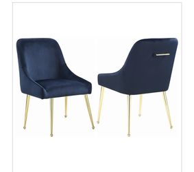 Set Of 2 Modern Classic Design Blue Velvet and Brass Legs Dining Chairs [NEW] **Assembly Req** $100City Of Industry, CA
