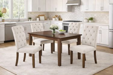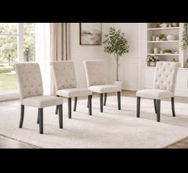 4 Pieces Beige Natural Wood Wash Upholstered Dining Chairs [NEW] **Assembly Req** $360City Of Industry, CA