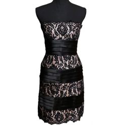 BCBGMaxAzria Lace Overlay Satin Stripe Strapless Formal Holiday Dress Women's 8$25Whittier, CA