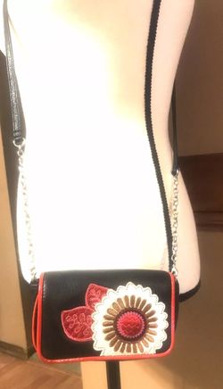 Brighton Black Leather W/Flower Embroidered Chain Strap Mini Crossbody Handbag$40Laveen Village, AZ