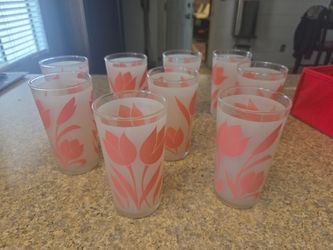 Vintage Set Of 9 Frosted Salmon Pink Tulip Glasses$50Mesa, AZ