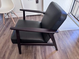 Black Leather Armchair with Dark Wood Frame$250Irvine, CA