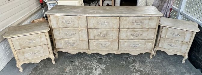 Beautiful Set of Distressed French Provincial Dresser and 2 Nightstands!! L69xD18xH32”$220Fort Lauderdale, FL