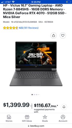 HP Victus 16.1 Gaming Laptop Barley Used Rtx4070$650Pompano Beach, FL