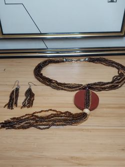 NECKLACE AND EARRINGS MULTICOLOR BROWN AND GOLDEN STRING BEATS $15Miami, FL