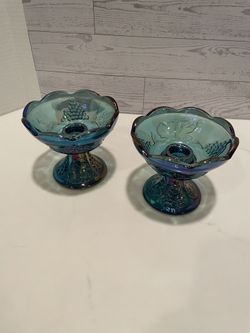 These are a pair of vintage Indiana Glass blue carnival glass candle holders$40Oceanside, CA