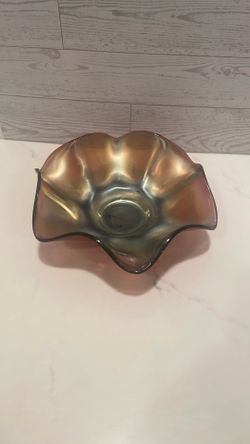 VTG marigold carnival glass ruffled bowl. $10Oceanside, CA