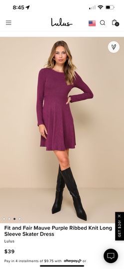 Lulu’s Fit and Fair Mauve Purple Ribbed Knit Long Sleeve Skater Dress Size Small$28San Diego, CA