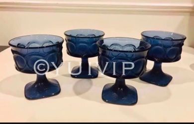 Set of 4 VTG Indiana Blue Thumbprint Frosted Glass$35New York, NY