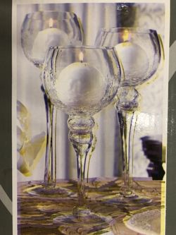 Set of 3 Crackle Clear Glass Candle Holders - 12 Sets Available $20Hoffman Estates, IL