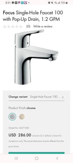 hansgrohe Metris S Modern Low Flow Water Saving 2-Handle 3 6-inch Tall Bathroom Sink Faucet in Chrome, (contact info removed)1$150Hayward, CA