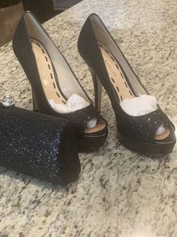 Black Sequenced Peep Toe High Heel Shoes With Matching Purse $25Fontana, CA