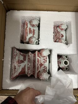 Red Porcelain Pagoda Form Tulipieres Mid Century Flower Vase$350Oakland Park, FL