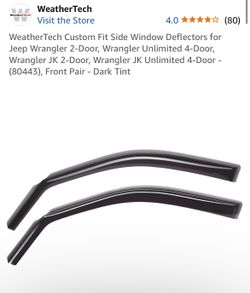 WeahterTech Jeep Wrangler Deflectors Part Number 80443$50Flower Mound, TX