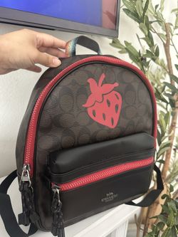 Coach Charlie Backpack Signature Canvas Strawberry Motif Brown Black NWT F78252$50Hemet, CA