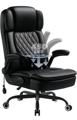 450LBS Big and Tall Executive Office Chair with Flip up Arm, Heavy Duty PU Leather Computer Desk Chair,Comfortable High Back Swivel Home Office Chair $208Fresno, CA