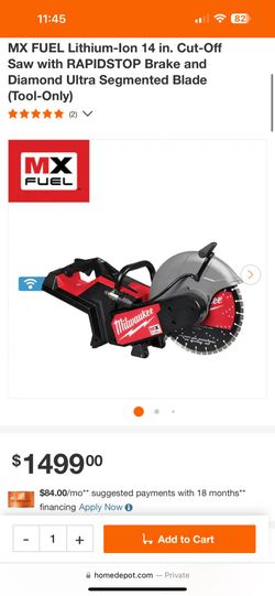 Milwaukee FUEL Lithium-Ion 14 in. Cut Off Saw Kit with RAPIDSTOP Brake$800Grand Terrace, CA