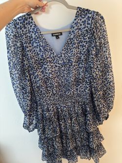 Express - 3/4 Sleeve Cinched Waist Ruffled Dress - Size M- Blue $20Medley, FL