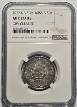 1922 NA Russia USSR Silver 50 Kopeks NGC AU Details OBV Cleaned Rare Early Soviet$60Long Beach, CA