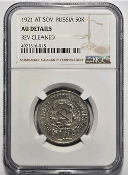 1921 AT Soviet Russia 50 Kopeks NGC AU Details First Year of Issue!$105Long Beach, CA