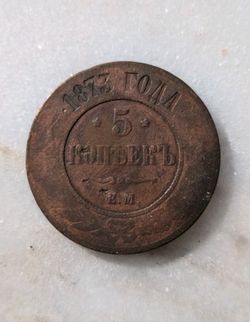 1873 EM Russia 5 Kopeks Copper Coin Russian Empire Tsar Alexander II$11Long Beach, CA