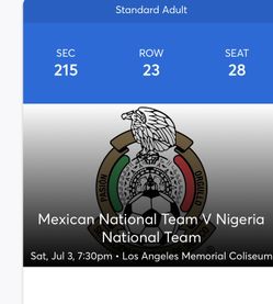 Ticket Para El Juego De Mexico vs Nigeria$80Bell Gardens, CA