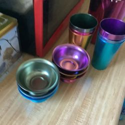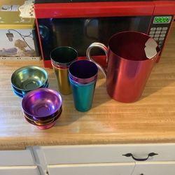 RAINBOW METAL PITCHER AND cUPS AND DESTERSBOWLS SETS ALl NEW. For 50.00 $50Medford, OR