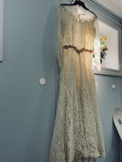 Wedding Gown Sz 6 6’ Train Hand Beaded Crystals Front Full Button Back Bodice$3,500Sharon, MA