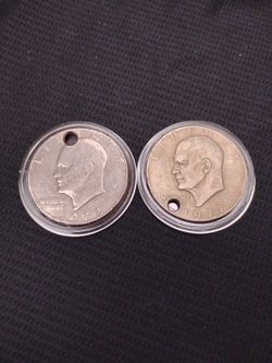 2 Vintage Old USA Liberty One Dollar Coins With Holes - 1972 & 1977 $17Anaheim, CA