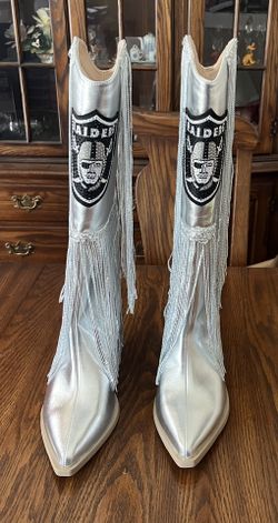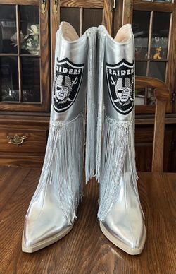 Las Vegas Raiders Cuce Silver Fringe Boots w/ Sequin Detail - Women Size 10 - NEW$130West Covina, CA
