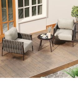 Juego de 3 piezas de muebles de patio | Sillones y mesa de café | Muebles para exteriores con cojines | Juego de conversación moderno de asientos prof$280El Monte, CA