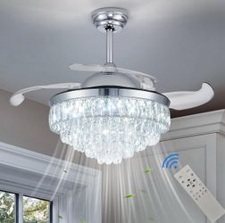 42'' Modern Crystal Ceiling Fans with Lights Invisible Fandelier,Silent Motor Ceiling Fan with Timer Memory Function Dimmable Fandelier for Bedroom D$60El Monte, CA