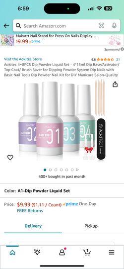 Morovan Dip Powder Liquid Set with Activator Base Top Coat and Dipping Powder Brush Saver 4pcs 0.5oz for Dip Powder Nail Kit$9Houston, TX