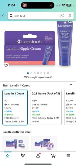 Lansinoh Lanolin Nipple Cream, Safe Nipple Balm for Baby and Mom$8Houston, TX