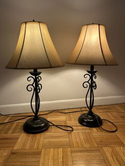 Table Nightstand Lamp Set of 2 Beige Brown Shade Unique Design$80Peck Slip, NY