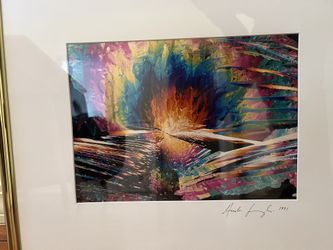Abstract Wall Print Art Matted Gold-tone Frame Signed 1991$100Queens, NY