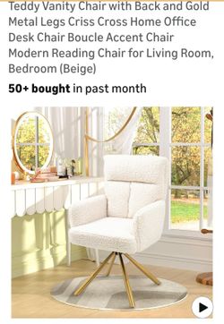 Teddy Vanity Chair With Back And Gold Metal Legs Criss Cross Home Office Desk Chair Boucle Accent Chair, Modern Reading Chair For Living Room, Beige $70Rialto, CA