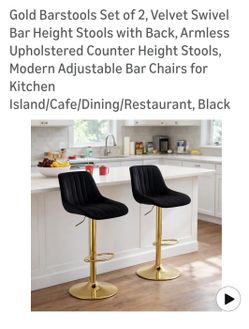 Black Bar Stools Set Of 2, Velvet Swivel Bar Height Stools With Back, Armless Upholstered Counter Height Stools, Modern Adjustable Bar Chairs $100Rialto, CA