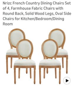 French Country Dining Chairs Set Of 4, Farmhouse Fabric Chairs With Round Back, Solid Wood Legs, Oval Side Chairs For Kitchen, Bedroom, Dining Room$200Rialto, CA