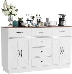 55" Modern Farmhouse Sideboard , Wooden Buffet Cabinet With 6 Drawers And 4 Doors $120Rialto, CA