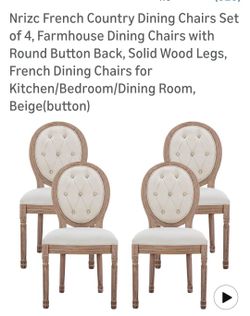 French Country Dining Chairs Set Of 4,Farmhouse Dining Chairs With Round Button Back, Solid Wood Legs, Beige $200Rialto, CA