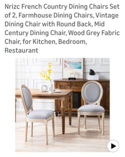 French Dining Chairs Set Of 2, Farmhouse Dining Chairs, Vintage Dining Chair With Roud Back , Mid Century Dining Chairs, Wood Grey Fabric Chair $100Rialto, CA
