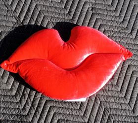 Kissy Lips Pillow 17"x 10" Bright Red Velvet Never Used Valentine Love Kissing Lips $20Phoenix, AZ