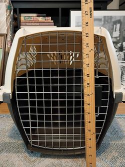 Pet Dog Cat Crate Carrier 26" x 16" Medium Size 20-25lbs Clean Metal Door Works Great Treat Compartment On Top Brown And Beige $30Phoenix, AZ