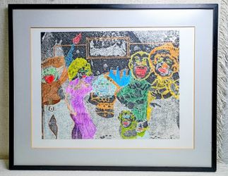 80s Art Print Original One Of A Kind Framed 16x20 Abstract Unusual Strange Non-glare Glass Light Gray Matte Thin Wood Black Frame$60Phoenix, AZ