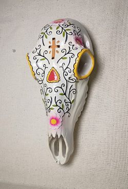 Cow Skull 15" Resin (not real b*ne) Hand-painted Day Of The Dead Hearts & Flowers Wall Hanging $40Phoenix, AZ