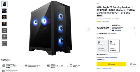 MSI Aegis Z2 RTX 5070 TI 2TB 32GB DDR5 Gaming PC (2300 Retail)$1,749New York, NY
