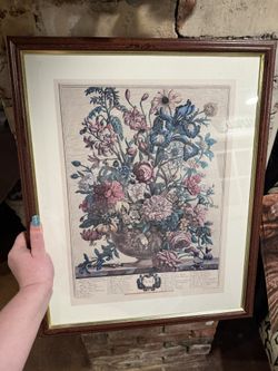 Framed Vintage Flower Engraving $30Tacoma, WA