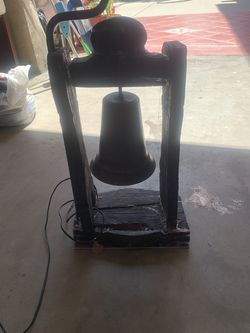 Wooden lamp with brass bell and shade$25Redlands, CA